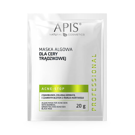 Acne-Stop - Maska algowa do skóry trądzikowej z bambusem, zieloną herbatą i czarnym błotem z Morza Martwego 20 g