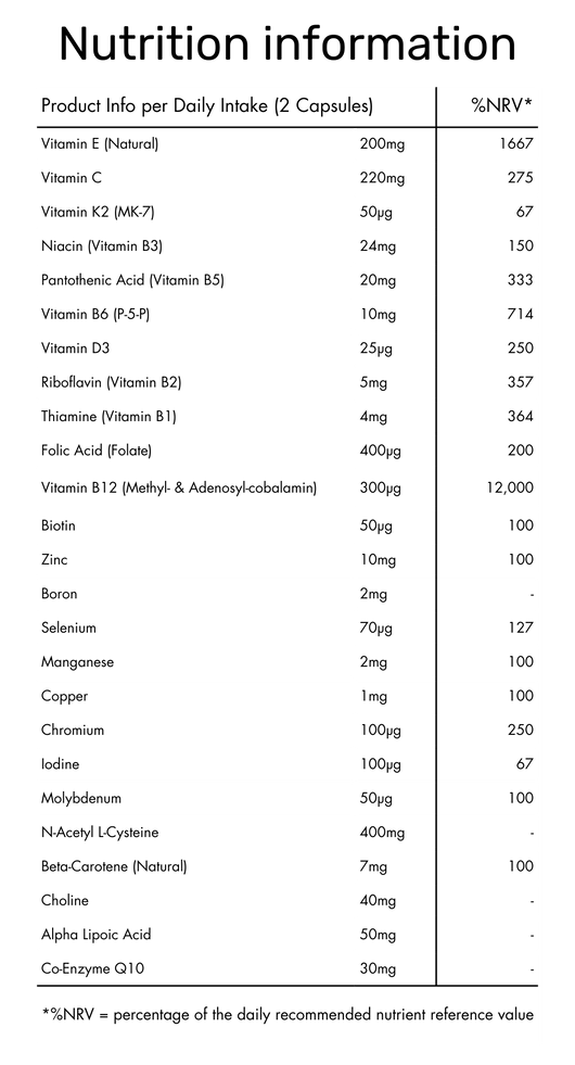 This advanced multivitamin is designed to support your nutrient intake when modern life, stress and pollution place extra demands on the body.