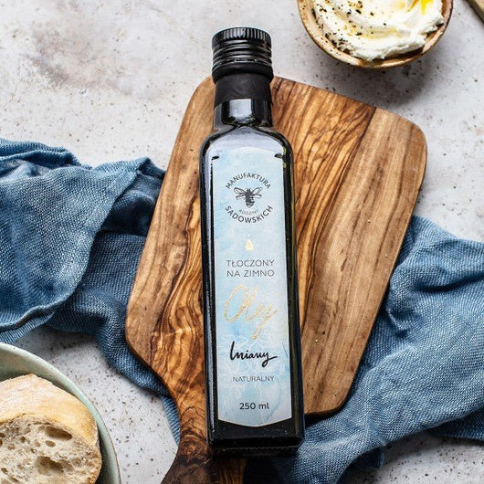 Flaxseed oil is the best of nature. It contains valuable Omega unsaturated fatty acids. Unrefined, cold-pressed - for the love of preserving beneficial values. Flaxseed oil from Sadowski's Manufaktura is pressed fresh - you will always get a bottle of fragrant, healthy oil, which will wrap up with herbal aroma and wonderful effects.