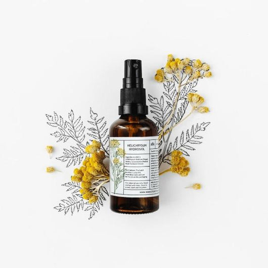 Organic helichrysum hydrolate imported from a small French distillery. Specific smell, intensely herbal, wonderfully refreshes, moisturizes and soothes allergic, sensitive and psoriasis skin. It smoothes, eliminates imperfections, redness and shine of the skin, evens out its color, which makes it an ideal cosmetic also for oily, acne and problematic skin. Helichrysum perfectly replaces tap water during skin care. It is recommended especially in the ritual of morning or evening care: we use it to cleanse the face and neckline and apply a drop of selected oil (for example raspberry seed oil) to the skin moistened in this way. Leaves the skin soft and moisturized. By mixing the hydrolate with any clay, we get a fantastic face mask. Peptides obtained from radish prolong the durability of the hydrolate, while showing a unique moisturizing effect.