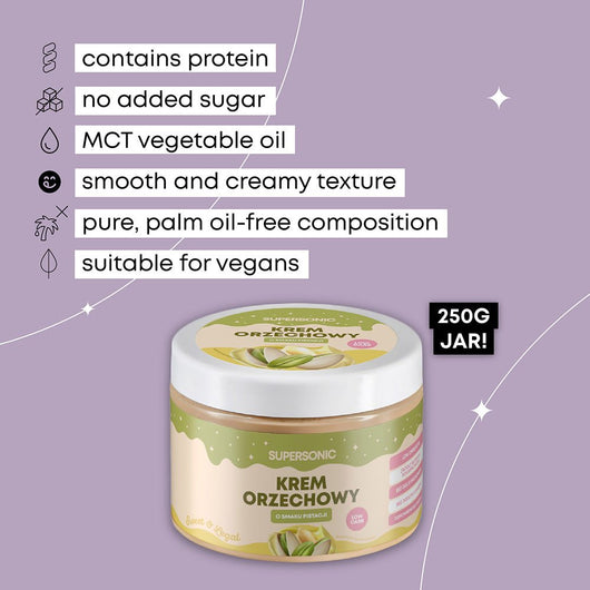 Thanks to its unique taste and composition, you can indulge yourself at any time of the day or night, without any remorse. Are you dreaming of a sweet snack that won't ruin your diet? SUPERSONIC peanut cream is the answer to your desires.