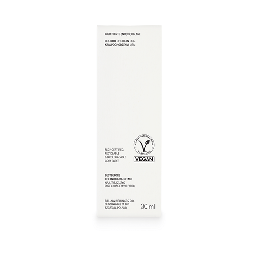 Thanks to its lightweight consistency, the oil works perfectly under makeup during the day and overnight. Squalane supports the rebuilding of the skin’s natural lipid layer, protects against water loss and provides anti-ageing benefits - firms, improves elasticity and evens skin tone. It does not clog pores and reduces the appearance of imperfections, making it ideal for combination, oily and problematic skin.
